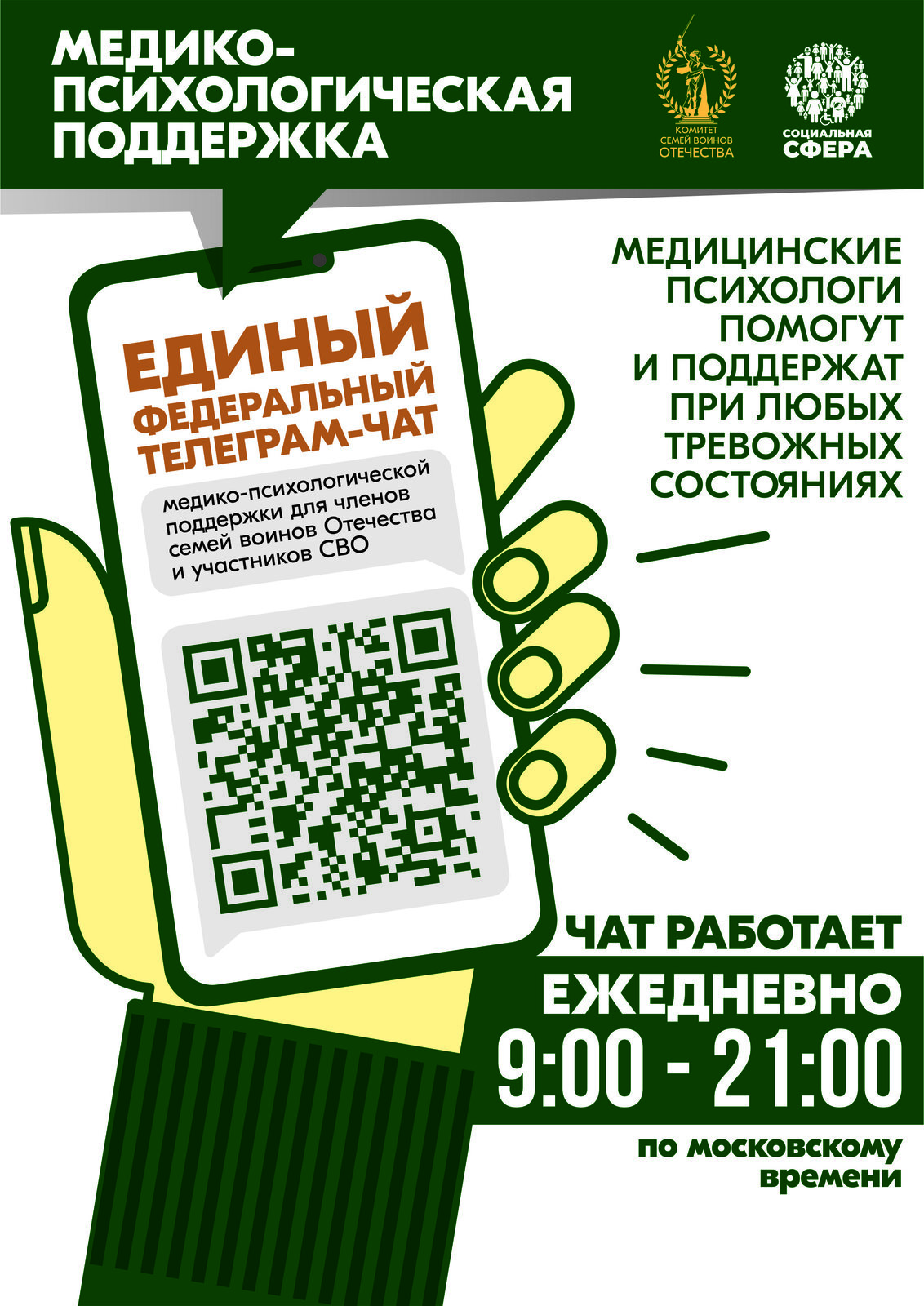 Информация об организации работы единого федерального телеграмм-чата медицинской психологической поддержки для семей воинов Отечества и участников СВО